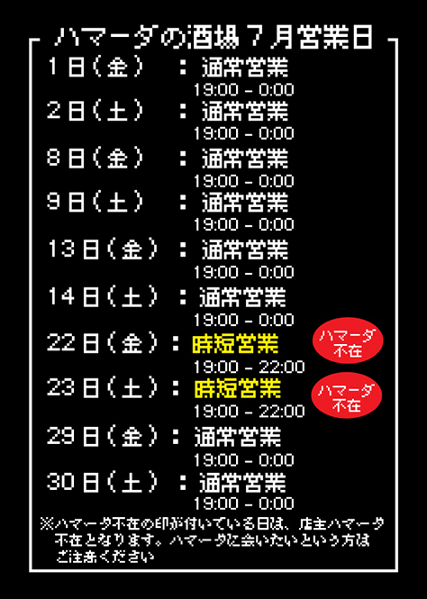 冒険者登録メニューメダルさがし 〒676-0046 兵庫県高砂市高砂町西宮町393 営業時間 / 11:00~14:00 19:00~23:00 営業日 / 不定期営業(※必ず営業カレンダーをご確認ください) 〒676-0046 兵庫県高砂市高砂町西宮町393 営業時間 / 19:00~0:00 営業日 / 金・土 定休日 / 不定 営業日カレンダーを見る 〒676-0046 兵庫県高砂市高砂町西宮町393 営業時間 / 11:00~14:00 19:00~23:00 営業日 / 不定期営業(※必ず営業カレンダーをご確認ください) Tweets by hama_danosakaba >メダルを探そう